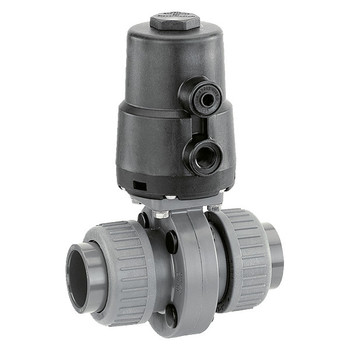 GEMUe 410 버터 플라이 밸브는 공압 작동됩니다. 밸브 본체는 플라스틱 디자인으로 제공됩니다.